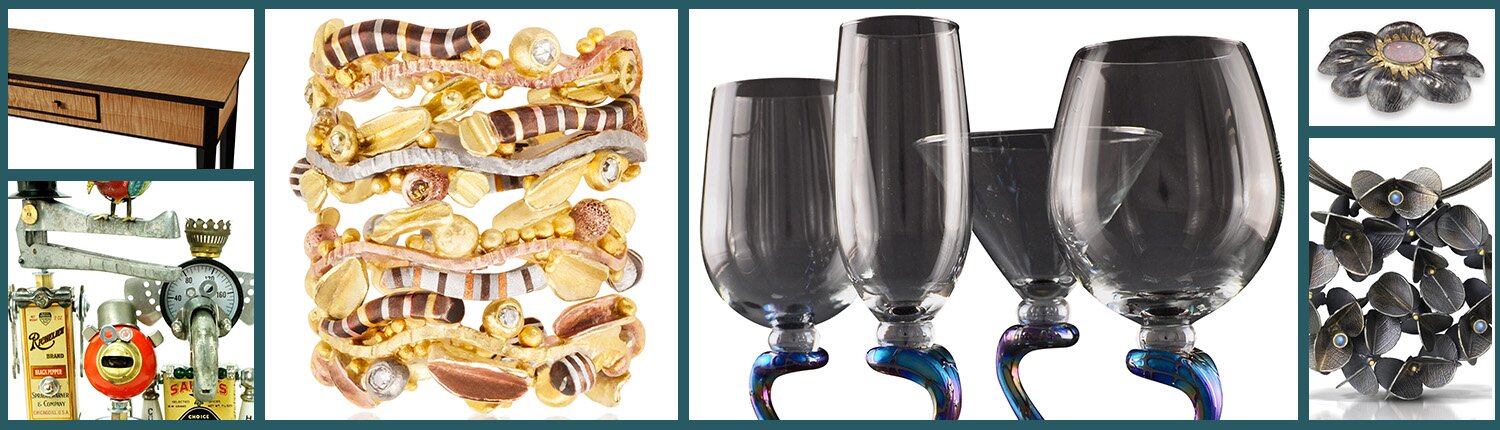 Fine craft artists present a striking variety of glass, ceramics, wood, both wearable and decorative fibers, metal, leather, basketry, printmaking and mixed media, as well as one-of-a-kind handmade furniture and both precious and semi-precious jewelry.